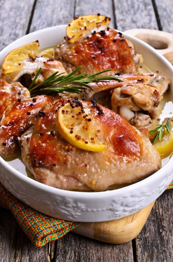 - מסדרים את פרוסות הלימון על העופות המתובלים